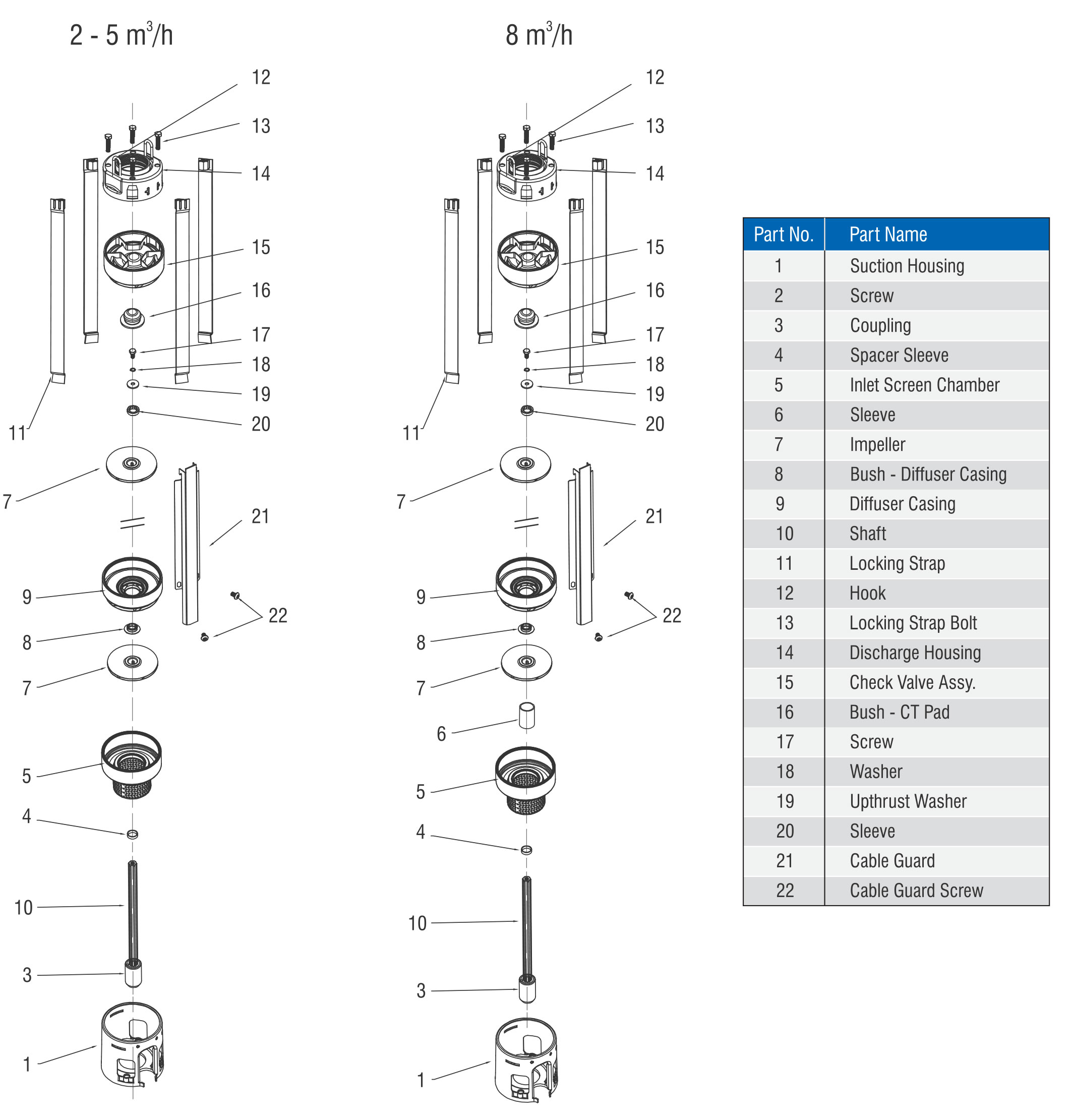 Pumps are equipped with replaceable stainless steel wear rings on the impeller.