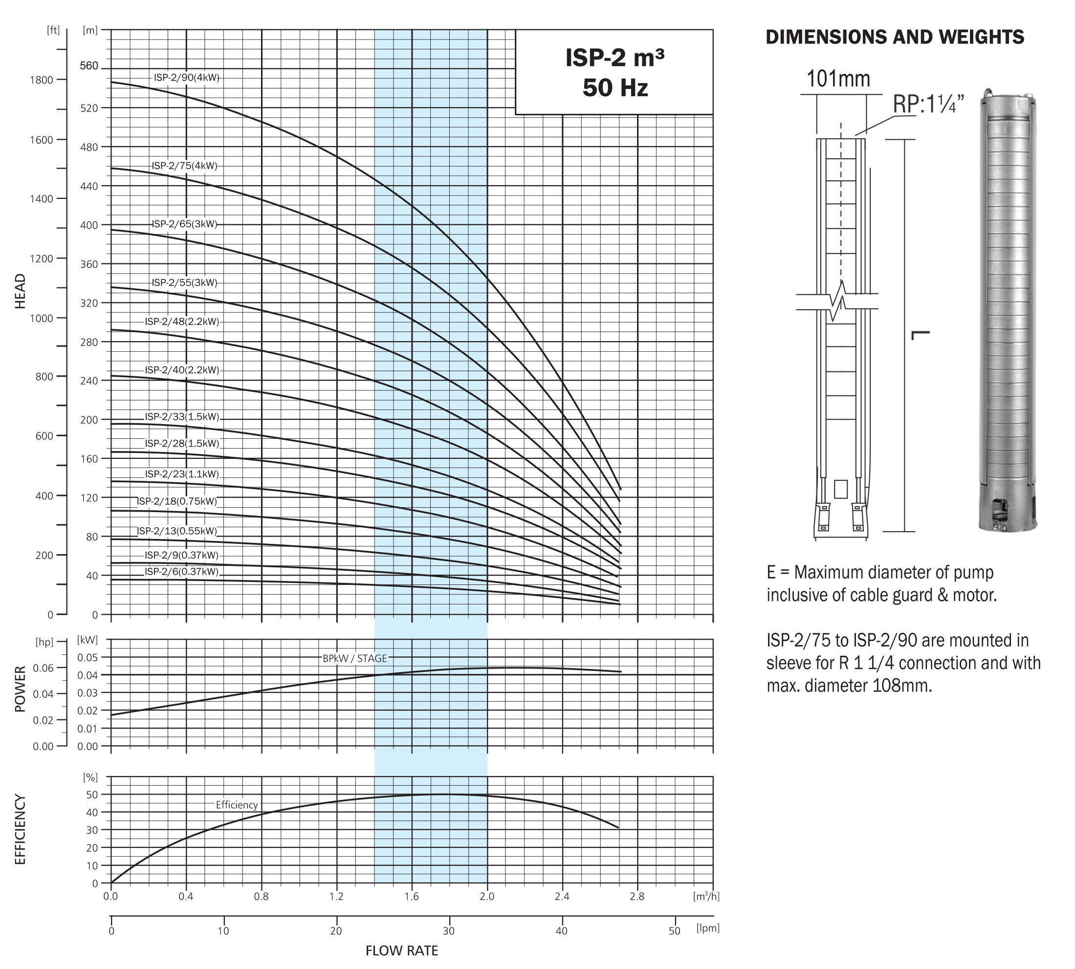 This pump features a multistage motor which allows it to deliver higher heads with greater efficiency than single-stage pumps.